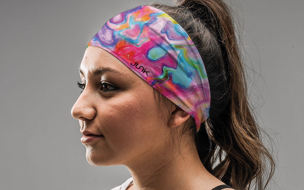 JUNK's Technical T-Shirt fabric is a breakthrough technology specifically designed to keep you cool while emulating a super comfortable t-shirt feel. This is the best athletic headband you'll ever wear!